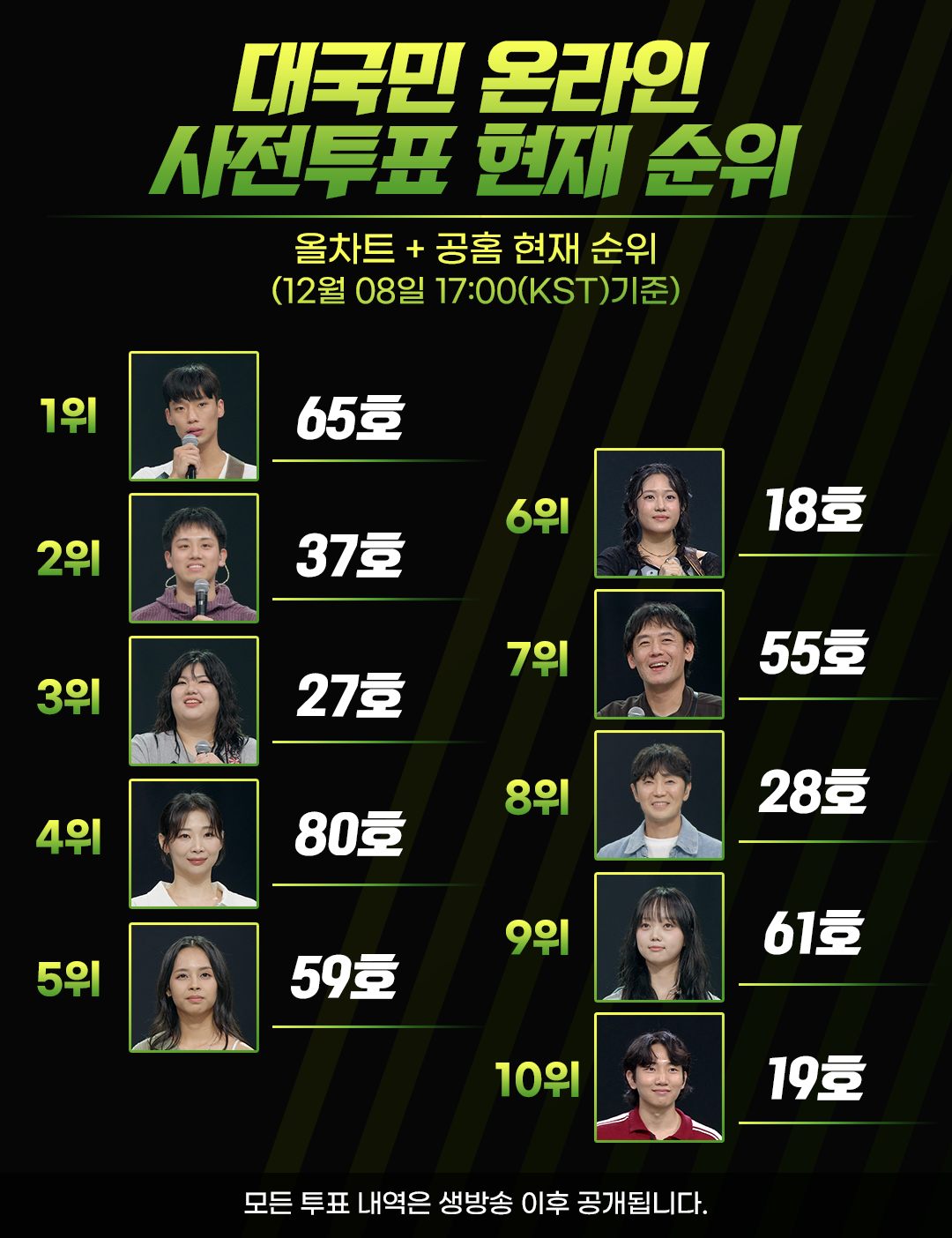 - ↑ (KR) ALLCHART: 대국민 온라인 사전투표 현재 순위 올차트 + 공홈 현재 순위 (12월08일 17:00(KST)기준)
