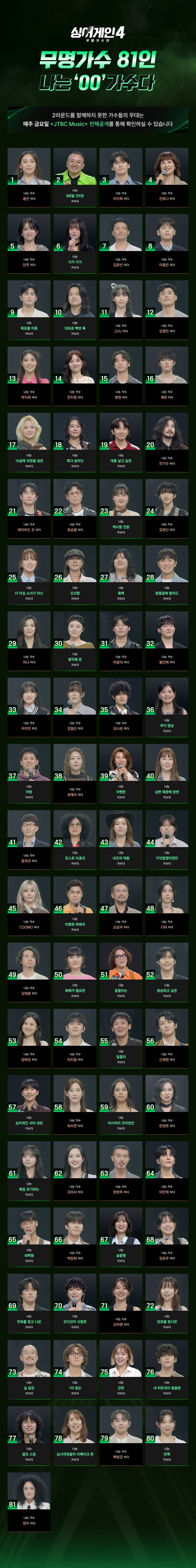 - ↑ (KR) JTBC Sing Again 4: 본선 진출 81인